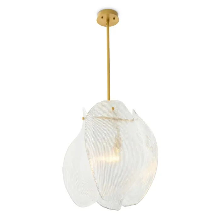 This chandelier from The Met x Eichholtz collection pays tribute to an early example of a so-called composite capital from the temple of Amun at Hibis combining papyrus and foxtail motifs. The glass elements on this reinterpretation reflect the vertical rhythm and botanical ornamentation on the original piece, blending Egyptian designs with refined contemporary craftsmanship.