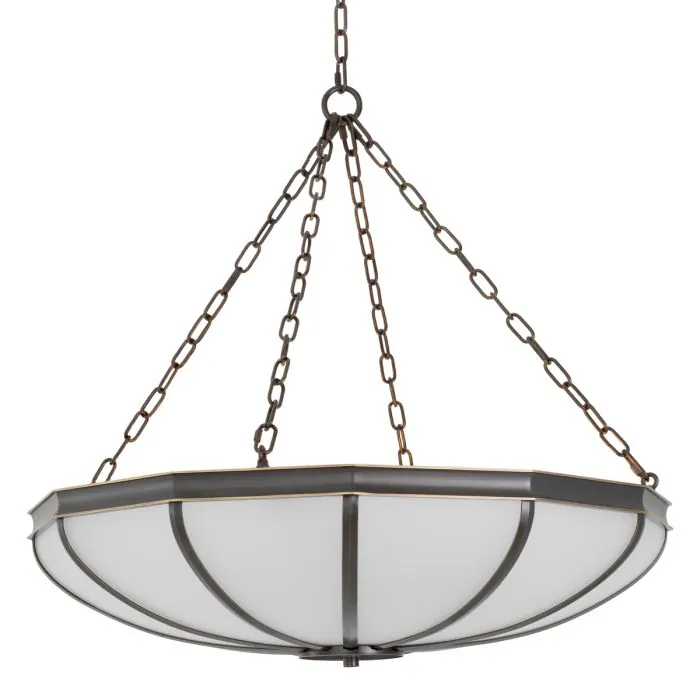 Finished with bronze highlights and elegant white glass, this refined chandelier is inspired by the iconic lighting piece that adorns the Great Hall of The Metropolitan Museum of Art. Its graceful silhouette and soft glow reflect the harmony of grandeur and subtlety found throughout the Museum’s interior.