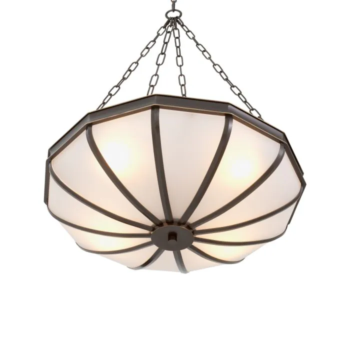Finished with bronze highlights and elegant white glass, this refined chandelier is inspired by the iconic lighting piece that adorns the Great Hall of The Metropolitan Museum of Art. Its graceful silhouette and soft glow reflect the harmony of grandeur and subtlety found throughout the Museum’s interior.