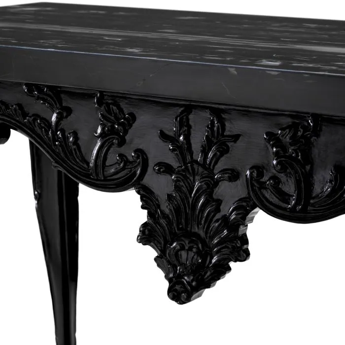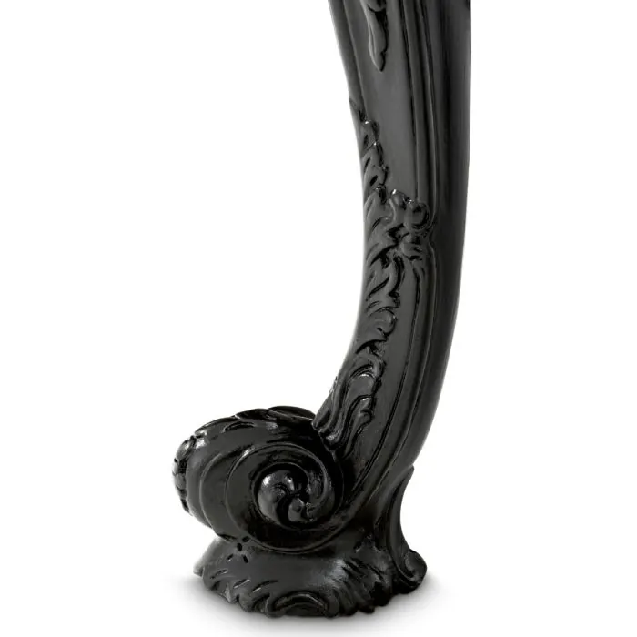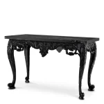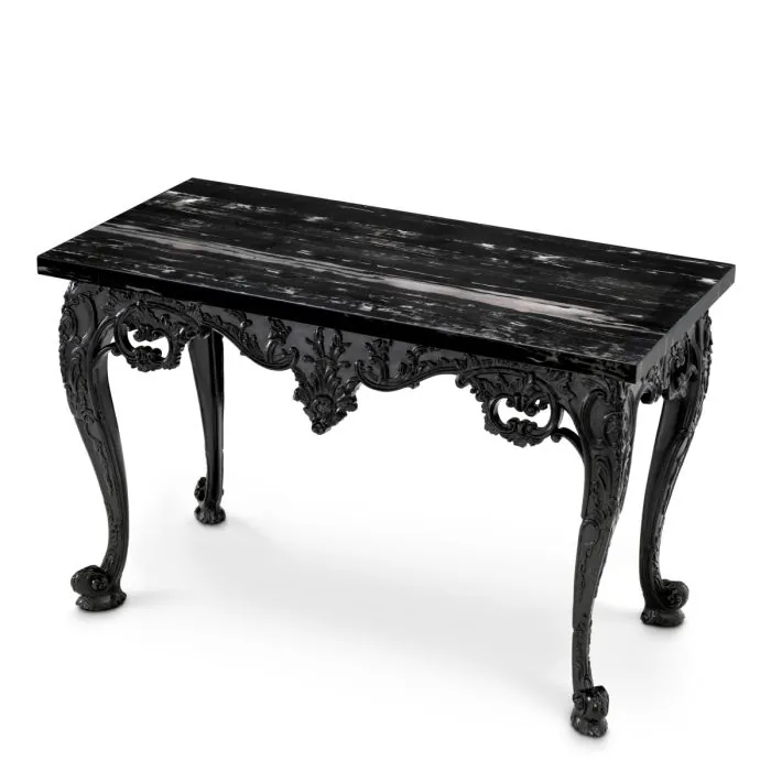 Crafted with a striking black marble top and a sculpted base in rich black wood, this console table embodies elegance and grandeur. The flowing curves and refined silhouette pay homage to 18th-century craftsmanship, while the deep tones and fine materials bring a sense of modern luxury. Designed to elevate any interior, the Cadwalader adds a dramatic yet timeless presence.