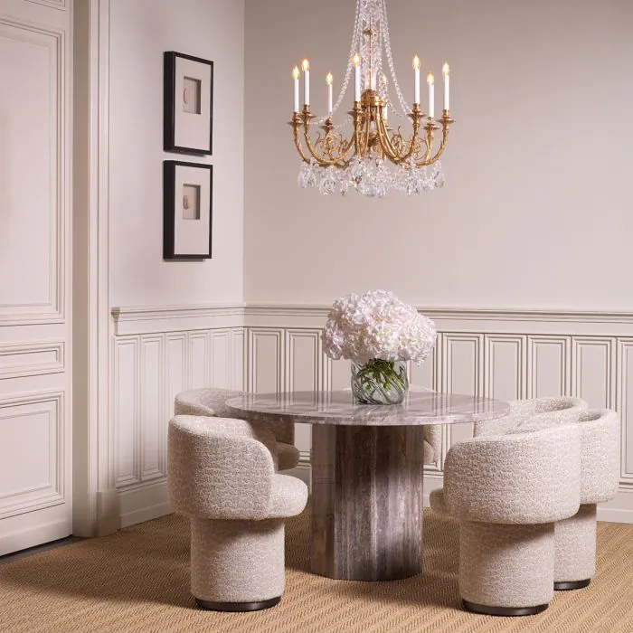 With its jacquard Beige upholstery and bronze accents, the Marly Chair radiates refined elegance and comfort.