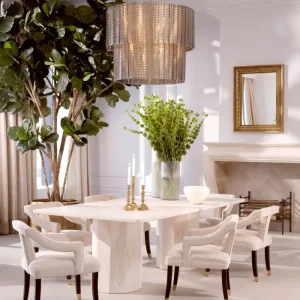 Ghế ăn Roumier tái hiện vẻ xa hoa của ghế bành Pháp năm 1788, lấy cảm hứng từ những thiết kế được chế tác cho phòng giải trí của vua Louis XVI tại Saint-Cloud.