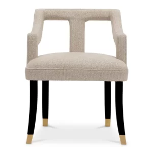 The Roumier Dining Chair draws inspiration from the opulent French armchairs of 1788, originally created for King Louis XVI’s gaming room at Saint Cloud.