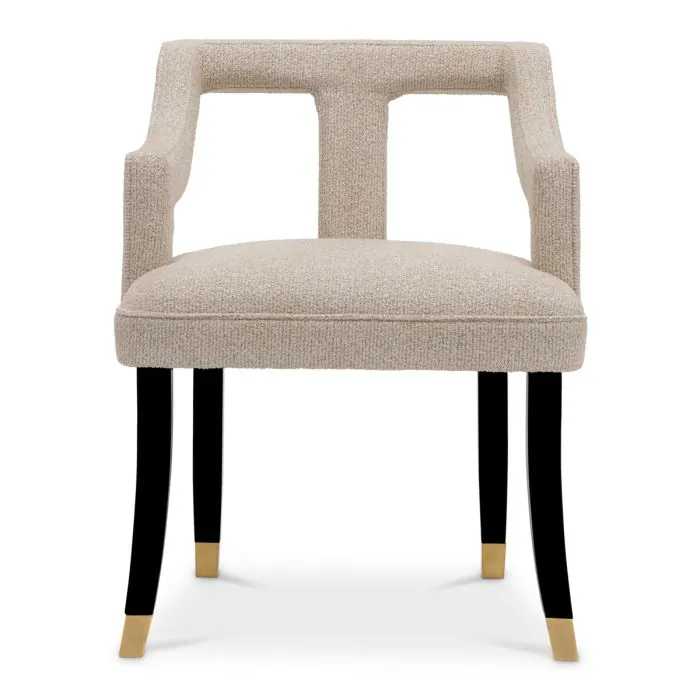 The Roumier Dining Chair draws inspiration from the opulent French armchairs of 1788, originally created for King Louis XVI’s gaming room at Saint Cloud.