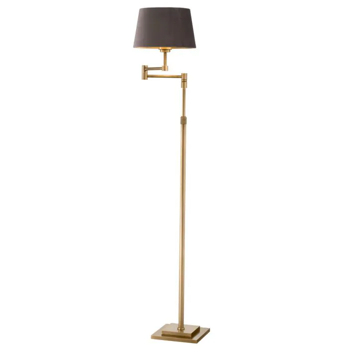 The Floor Lamp Corbin takes its design direction from The Metropolitan Museum of Art’s Cloisters Library. The Cloisters, the Museum’s space devoted to the art and architecture of the Middle Ages, opened to the public in Upper Manhattan in 1938. The Cloisters Library houses around 15,000 volumes that explore medieval European decorative arts, sculpture, architecture, painting, stained glass, and illuminated manuscripts. Our American-style floor lamp echoes the detailing on lamps in the library, with an adjustable stand in a brushed-brass finish and a grey velvet shade handcrafted in the Netherlands.