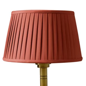 The Floor Lamp Tryon takes its design direction from The Metropolitan Museum of Art’s Cloisters Library. The Met Cloisters, the Museum’s space devoted to the art and architecture of the Middle Ages, opened to the public in Upper Manhattan in 1938.The Cloisters Library houses around 15,000 volumes that explore medieval European decorative arts, sculpture, architecture, painting, stained glass, and illuminated manuscripts. Our American-style floor lamp echoes the detailing on lamps in the library, with an adjustable stand in a brushed-brass finish and an orange pleated shade.