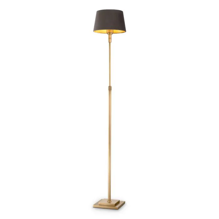 The Floor Lamp Tryon takes its design direction from The Metropolitan Museum of Art’s Cloisters Library. The Cloisters, the Museum’s space devoted to the art and architecture of the Middle Ages, opened to the public in Upper Manhattan in 1938.The Cloisters Library houses around 15,000 volumes that explore medieval European decorative arts, sculpture, architecture, painting, stained glass, and illuminated manuscripts. Our American-style floor lamp echoes the detailing on lamps in the library, with an adjustable stand in a brushed-brass finish and a grey velvet shade handcrafted in the Netherlands.