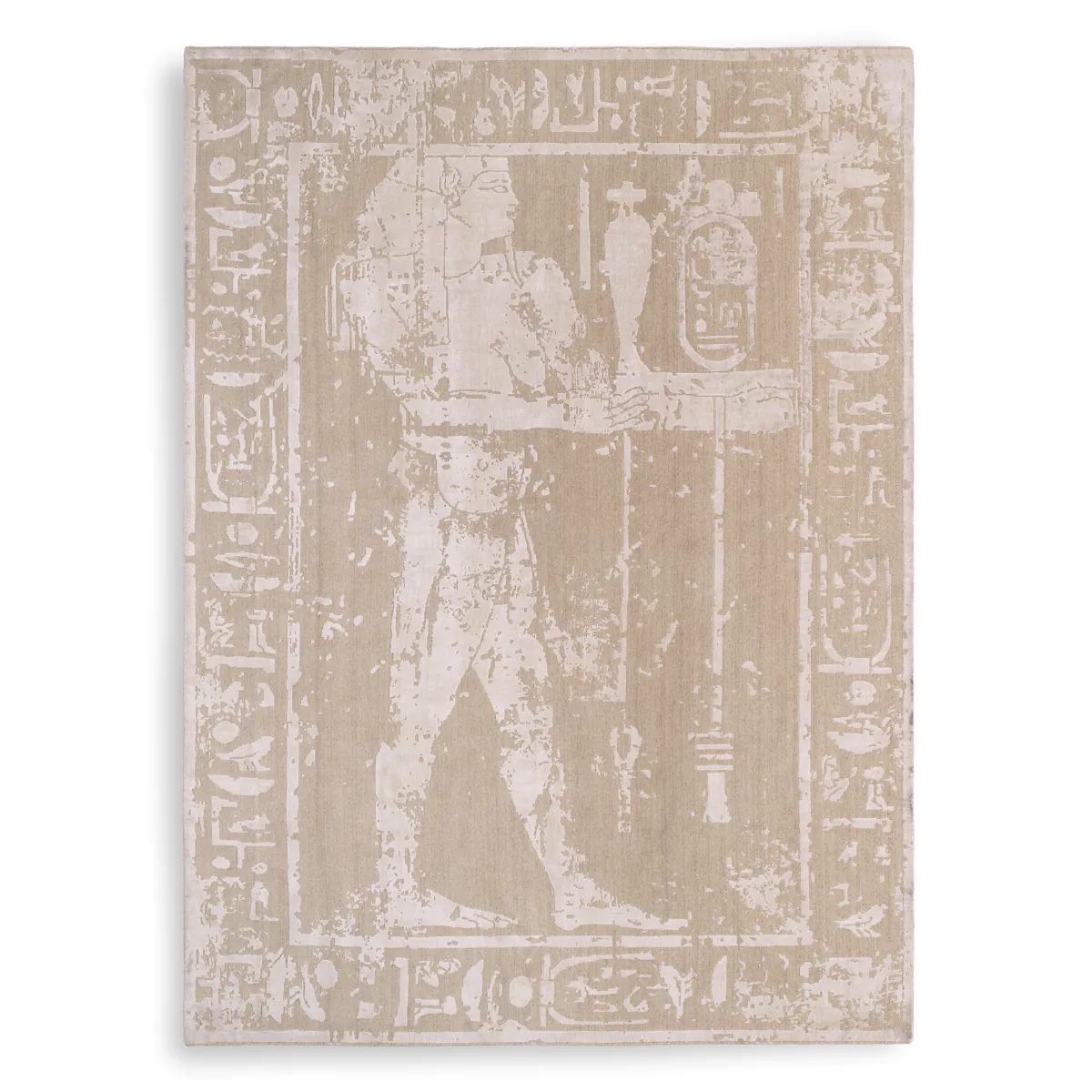 This sand Ivory masterpiece is handwoven from a blend of 60% wool, 20% cotton, and 20% viscose, offering both luxurious texture and timeless beauty. It brings the essence of ancient Egypt into your space, just as figures carrying offerings once provisioned the funerary rites of Akhtihotep. Embrace history and elegance with this exquisite carpet.