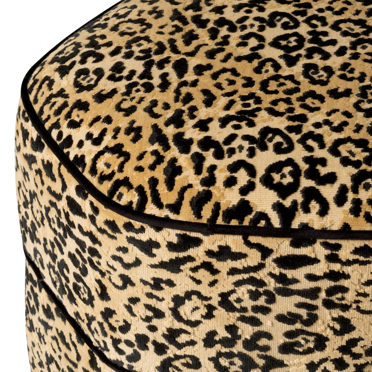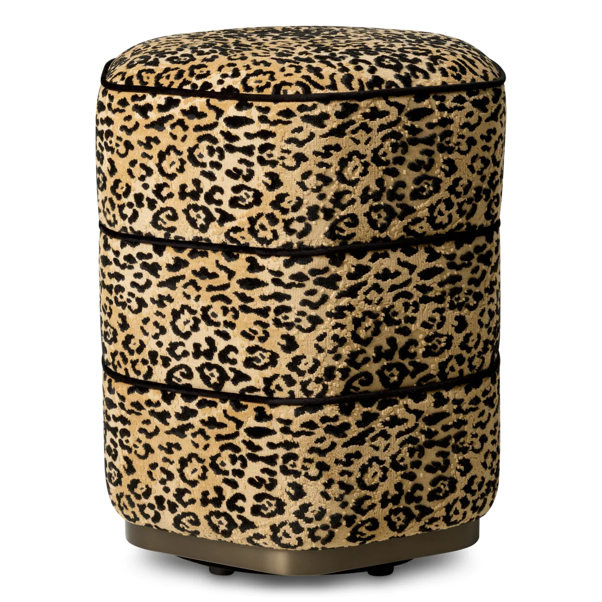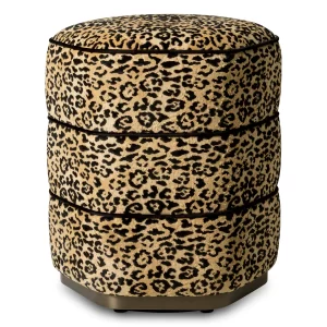 Fully upholstered in Bernard leopard fabric and set on a swivel base with a deep bronze finish, this versatile piece pairs comfort with a playful sense of sophistication. Whether used as additional seating or as a standalone accent, its sculptural silhouette and tactile upholstery make it a striking presence in both classic and contemporary interiors.